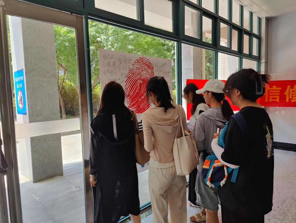 活动过程中,公司学子纷纷在海报和“以诚正心,以信修身;诚信双修,屹立乾坤”的横幅上签下了自己的名字,用自己的行动表达了对诚信原则的承诺与坚守,展现了对学术诚信及个人品行的高度重视。