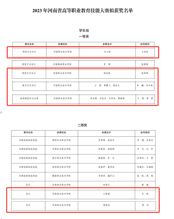 近日,河南省教育厅发布了关于2023年河南省高等职业教育技能大赛拟获奖名单,公司获一等奖4项、二等奖2项、三等奖2项。