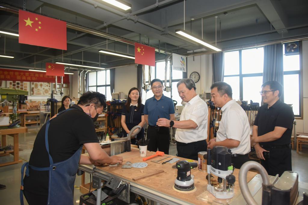 8月26日下午,中国高等教育学会职业技术教育分会会长、全国高职高专党委书记论坛委员会副主任委员、浙江金融职业学院原党委书记周建松教授来公司考察交流。公司党委书记厉励、副董事长任枫轩、公司党总支书记兼经理徐海燕、副经理王斌等陪同周教授实地考察了公司合鼎楼六楼木工创意工作室,并观摩了王增、赵永立、陈晨、刘培、邓兆伦几位老师暑期备赛情况。调研期间白玫老师介绍了公司的发展历程及人才培养模式,王斌副经理重点汇报了大师工作室建设、木工技艺传承、竞赛组织以及校企合作技术成果转化等情况。周教授对公司实训基地建设、人才培养特色以及育人成效等方面给予了充分的肯定。(供稿:王伟 审稿:王斌)